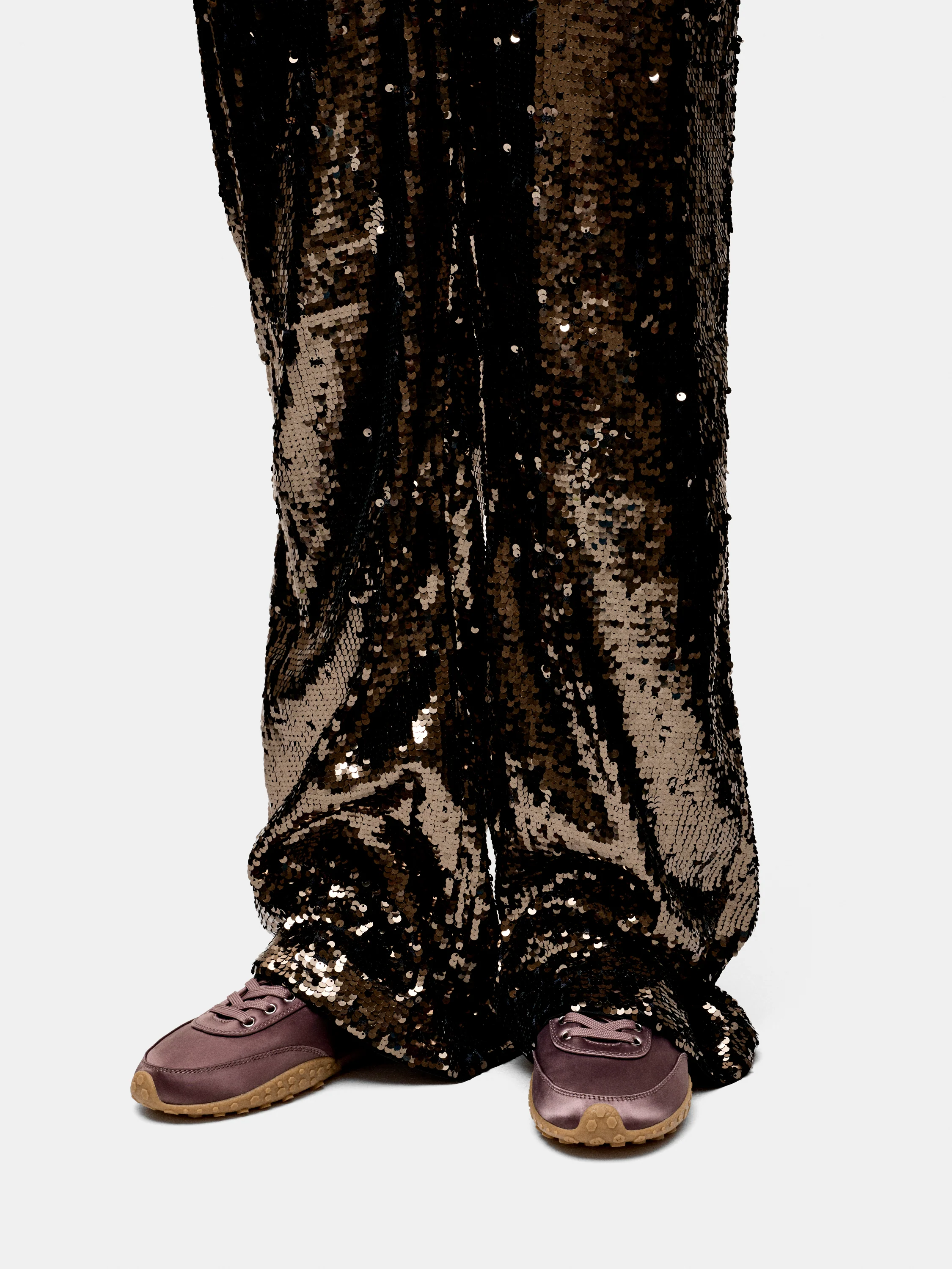Sneaker monocolor confeccionada en satén y piel. Parte trasera con detalle de logo y elástico fruncido para mayor ajuste. Suela con textura. Cierre mediante cordones a tono.