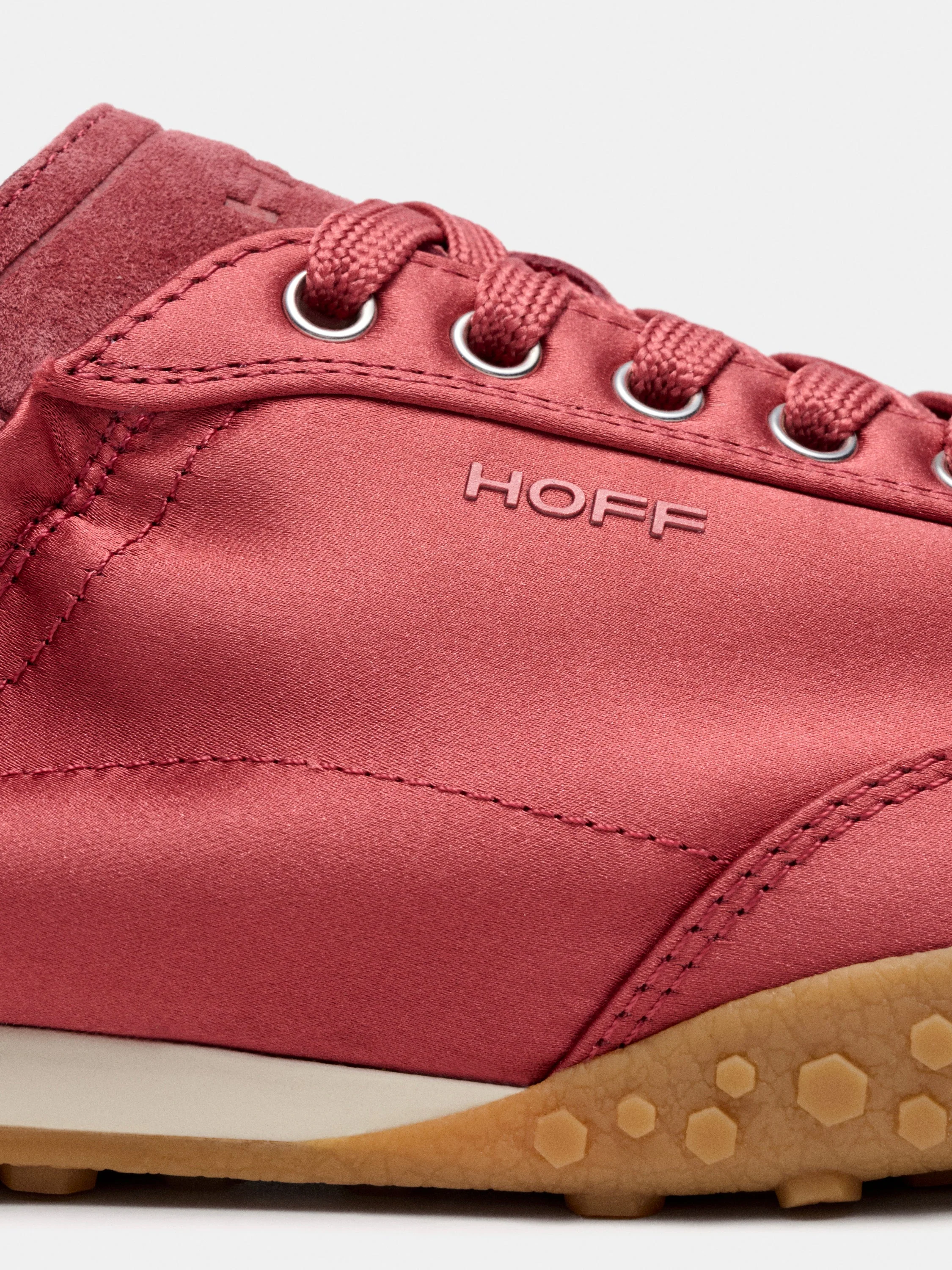 Sneaker monocolor confeccionada en satén y piel. Parte trasera con detalle de logo y elástico fruncido para mayor ajuste. Suela con textura. Cierre mediante cordones a tono.
