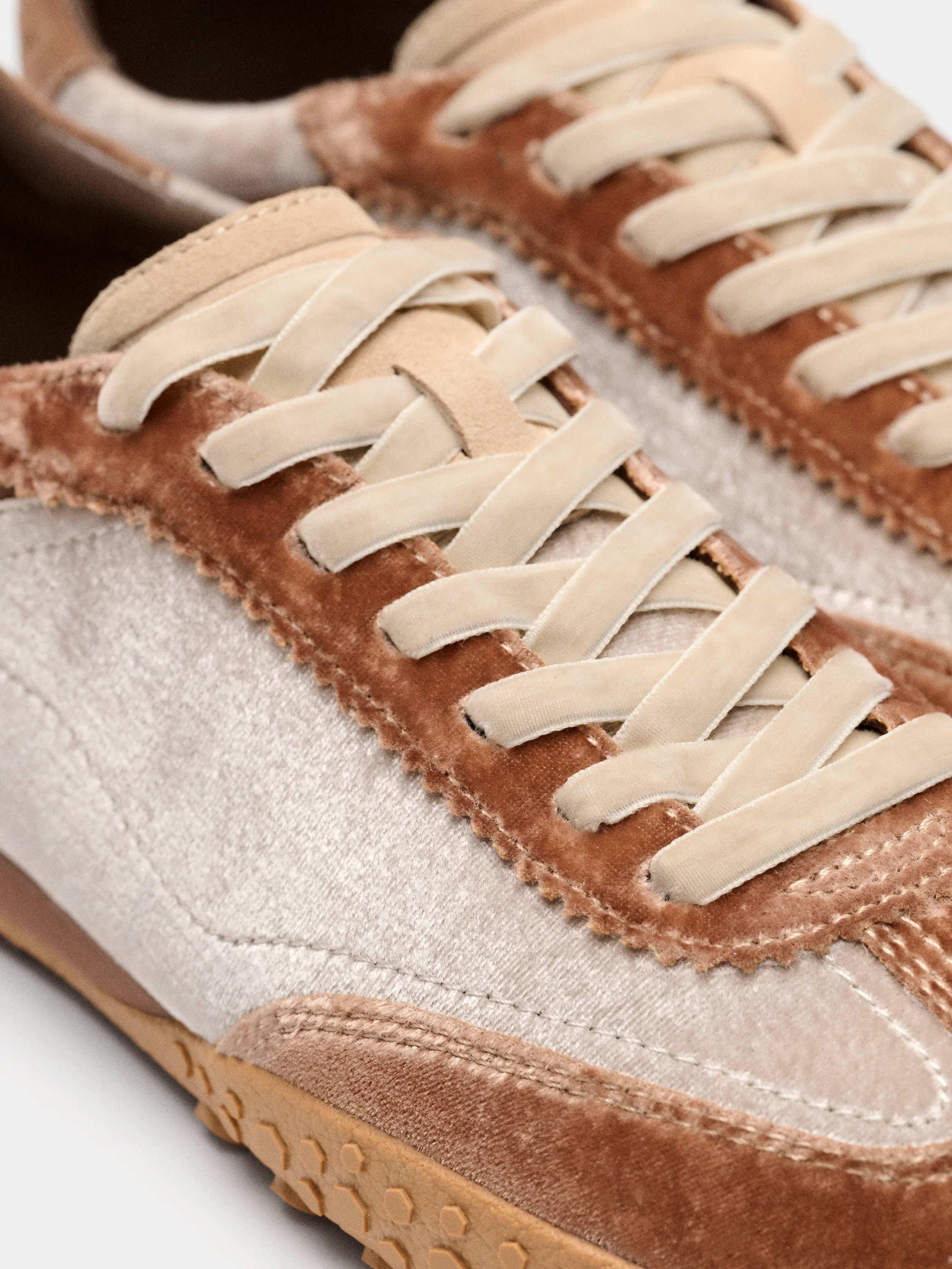Sneaker con acabado aterciopelado en combinación de colores. Parte trasera con detalle de logo. Suela con textura para mayor agarre. Cierre mediante cordones a tono.