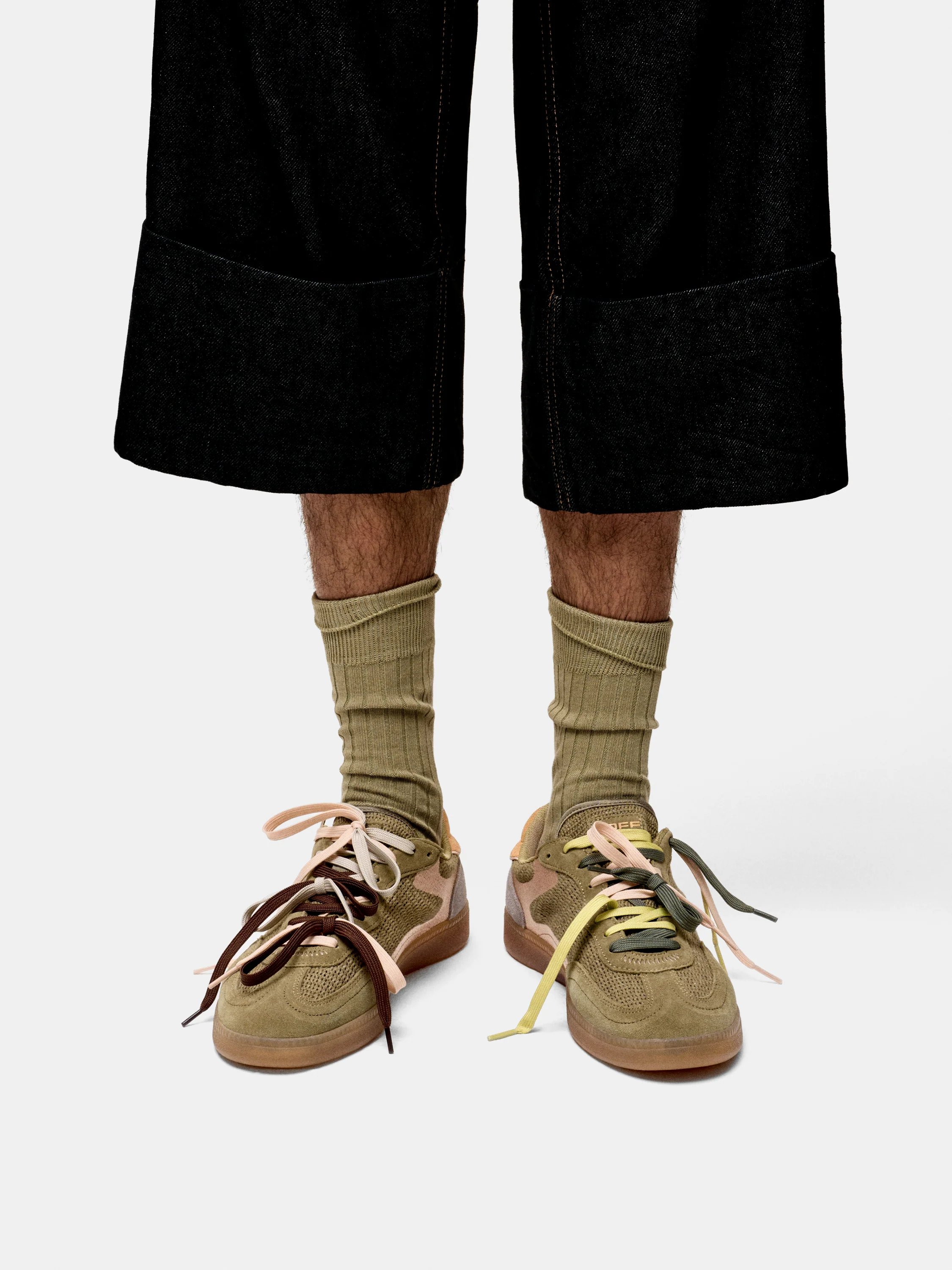 Sneaker clásica con aire nostálgico. Diseñada combinando distintos materiales, formas y tonos, dando lugar a una estética cuidada y funcional. Su lengüeta flexible y plantilla Memory Foam aportan una pisada cómoda, adaptable y pensada para el uso diario.