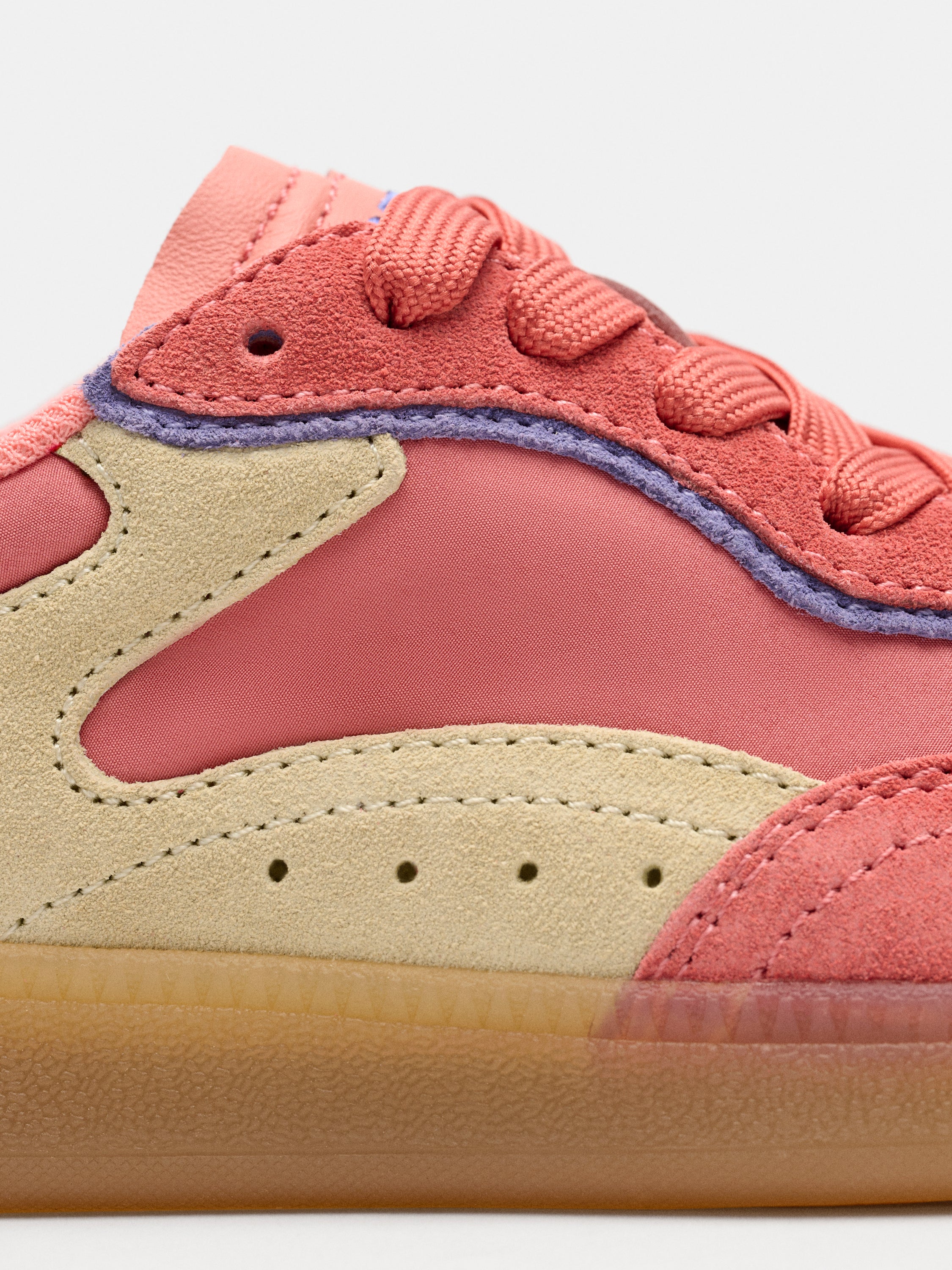 Sneaker en combinación de materiales y colores. Detalle de logo en la parte trasera. Cierre mediante cordones.